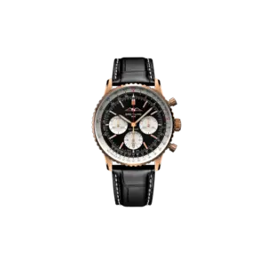 Crafted from 18k red gold, the 44mm case features the iconic Chronomat design: a unidirectional rotating bezel with rider tabs, screw-down crown, and sharply polished lines. The black dial provides contrast and clarity, with luminous hands and markers ensuring legibility in all conditions. Three chronograph sub-dials, located at 3, 6, and 9 o’clock, support a host of timing functions — all powered by Breitling’s in-house Caliber B01 automatic movement, boasting COSC certification and a robust 70-hour power reserve.