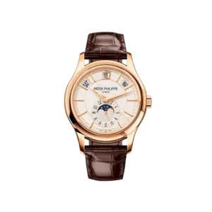 The 5205R-001 combines practicality with sophistication—an Annual Calendar that requires adjustment only once a year, paired with an exquisite moon-phase display. Its sleek rose-gold case and luminous gradient dial make it an icon of refined taste, ideal for discerning collectors and professionals who value both technical mastery and contemporary elegance.