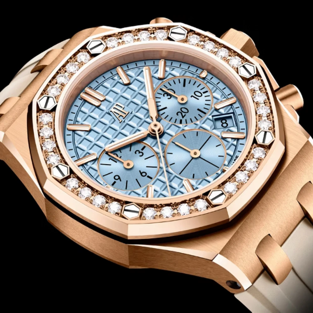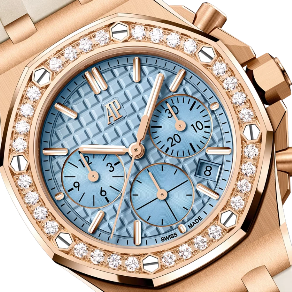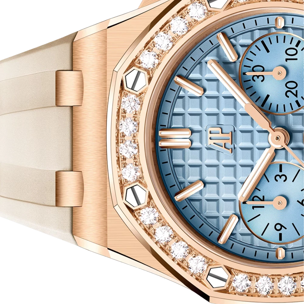 The Audemars Piguet Royal Oak Offshore Selfwinding Chronograph Ref. 26231ST.ZZ.A178CA.01 luxury watch is the perfect fusion of sporty elegance and Swiss haute horlogerie craftsmanship. Designed for collectors and style enthusiasts, this model showcases the bold character of the Offshore collection while adding a refined and feminine touch through diamond brilliance and sophisticated detailing.