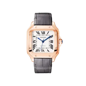 The Santos de Cartier Medium Automatic 18ct Rose Gold Watch is the embodiment of Cartier’s luxurious elegance and timeless innovation. Meticulously crafted from solid 18ct rose gold, this refined timepiece pays tribute to one of the world’s first modern wristwatches — originally created in 1904 for aviation pioneer Alberto Santos-Dumont.